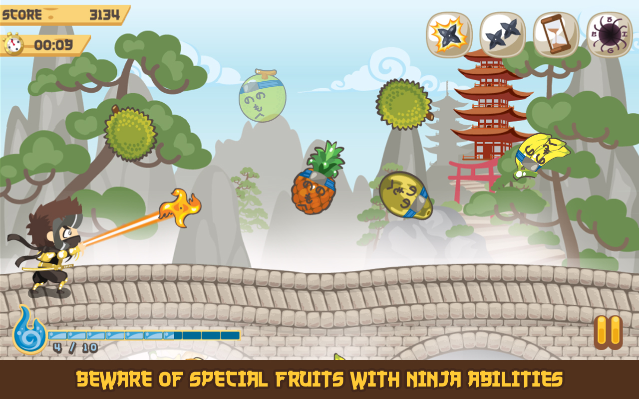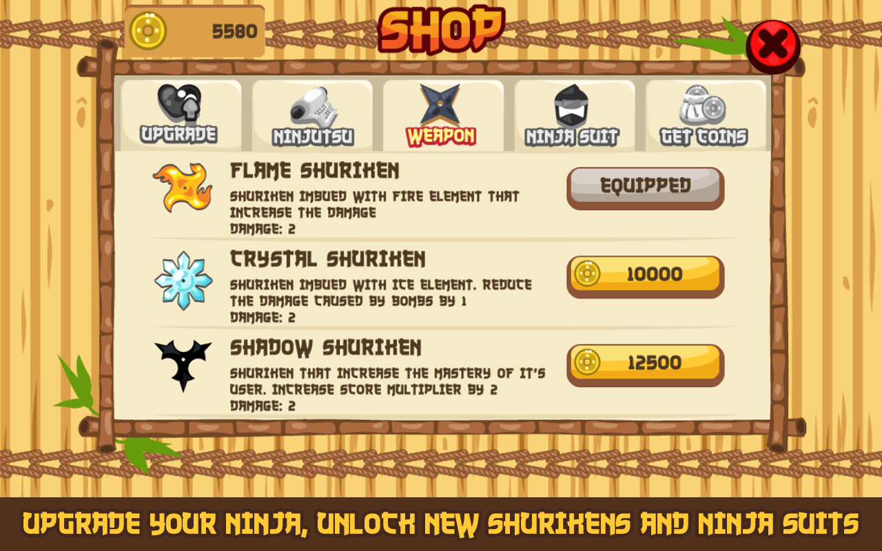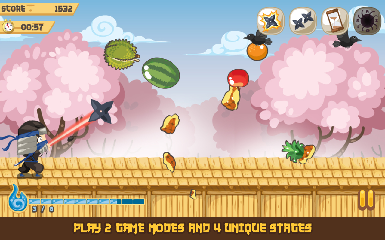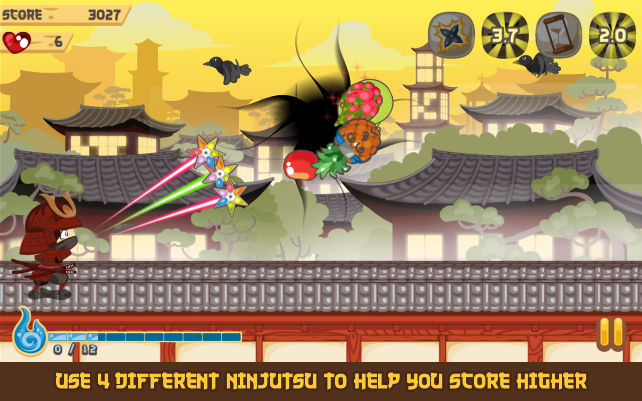 • Upgrade your ninja and use 4 different ninjutsu to help you get a higher score